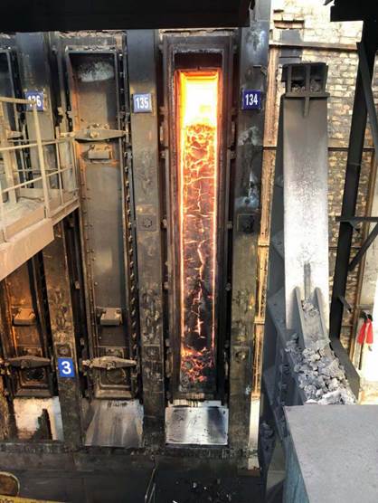 立式热回收焦炉7孔试验炉推出第一炉红焦