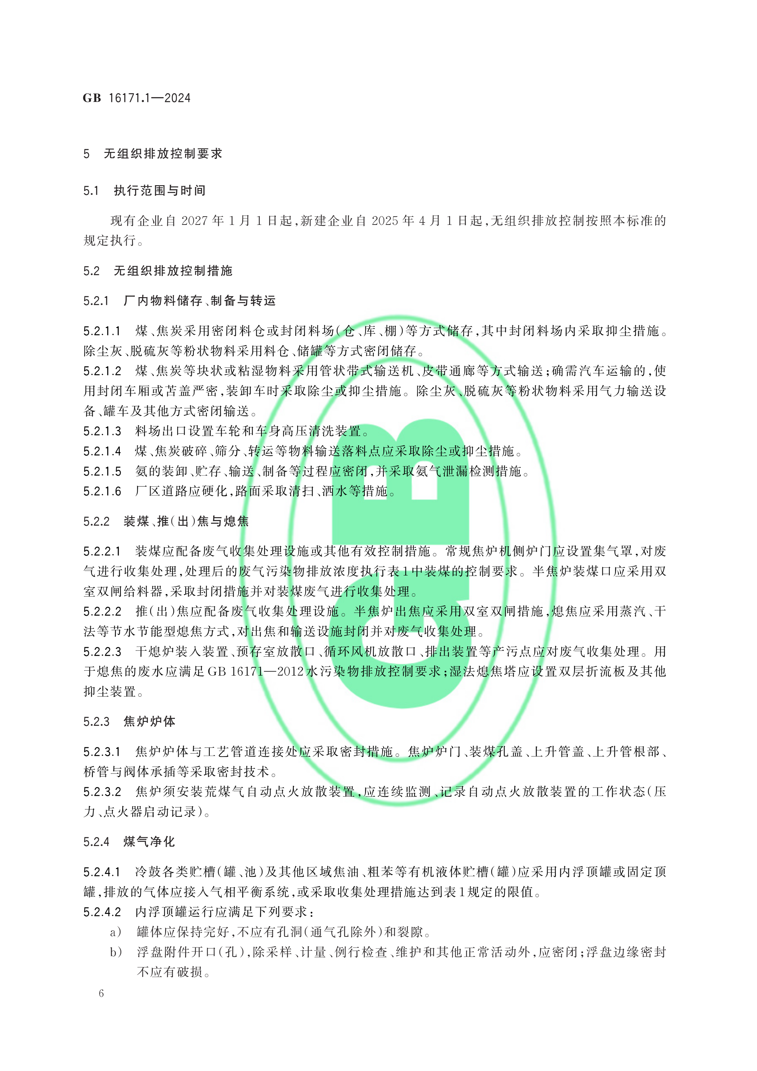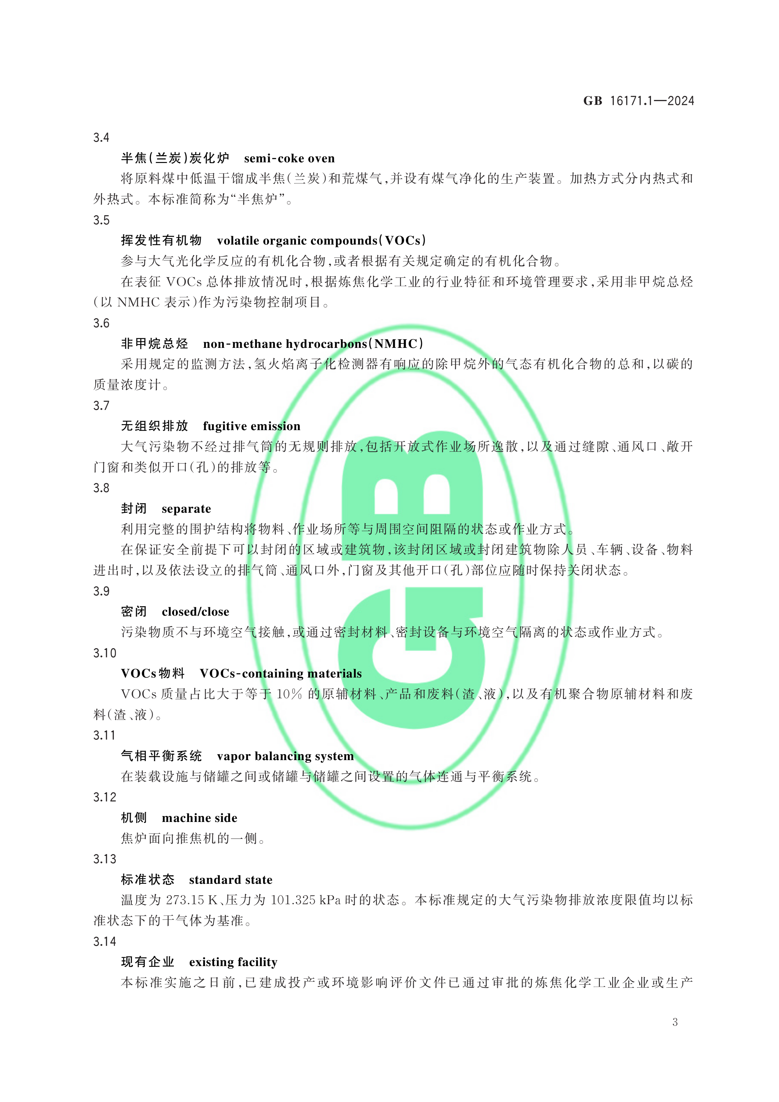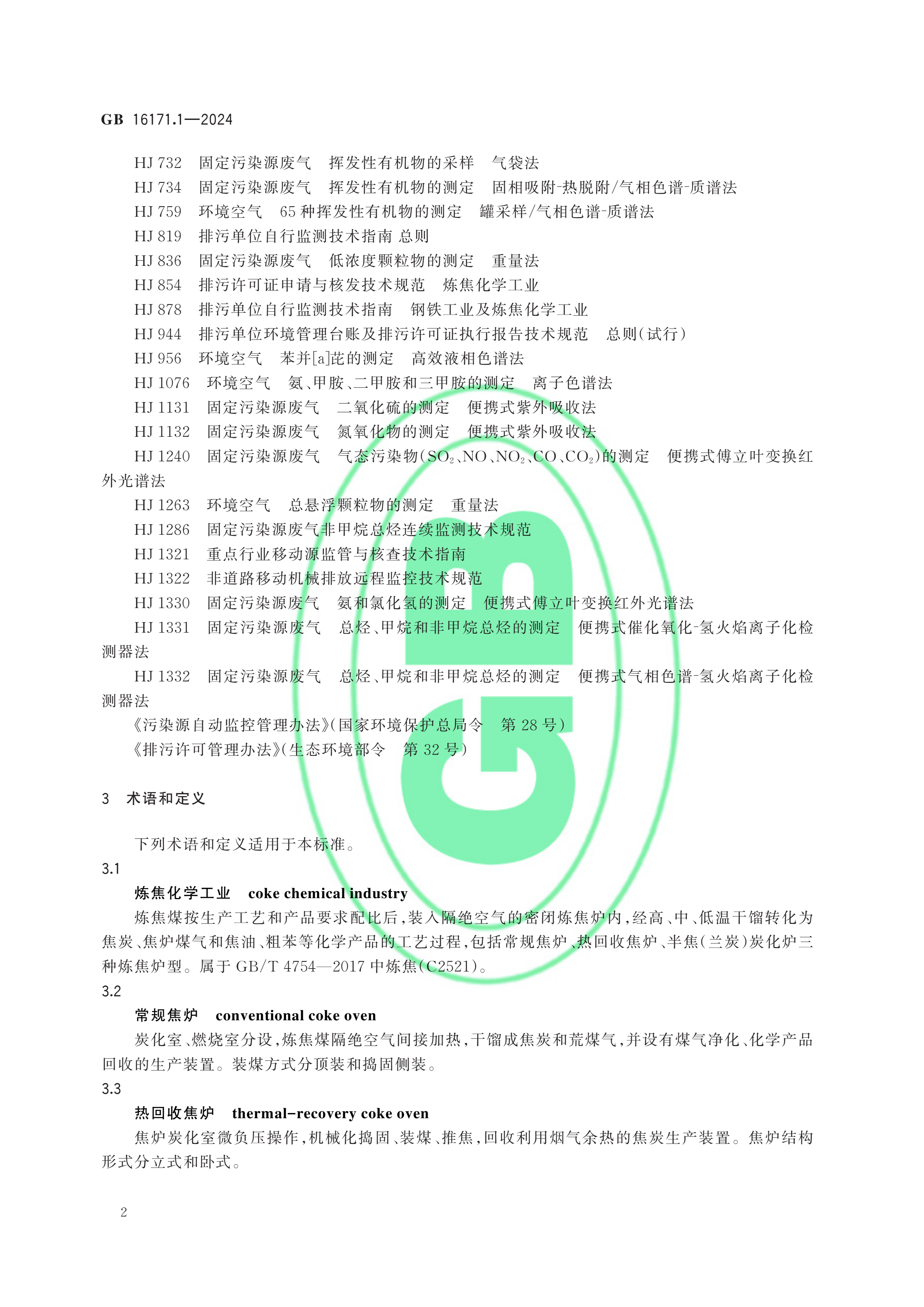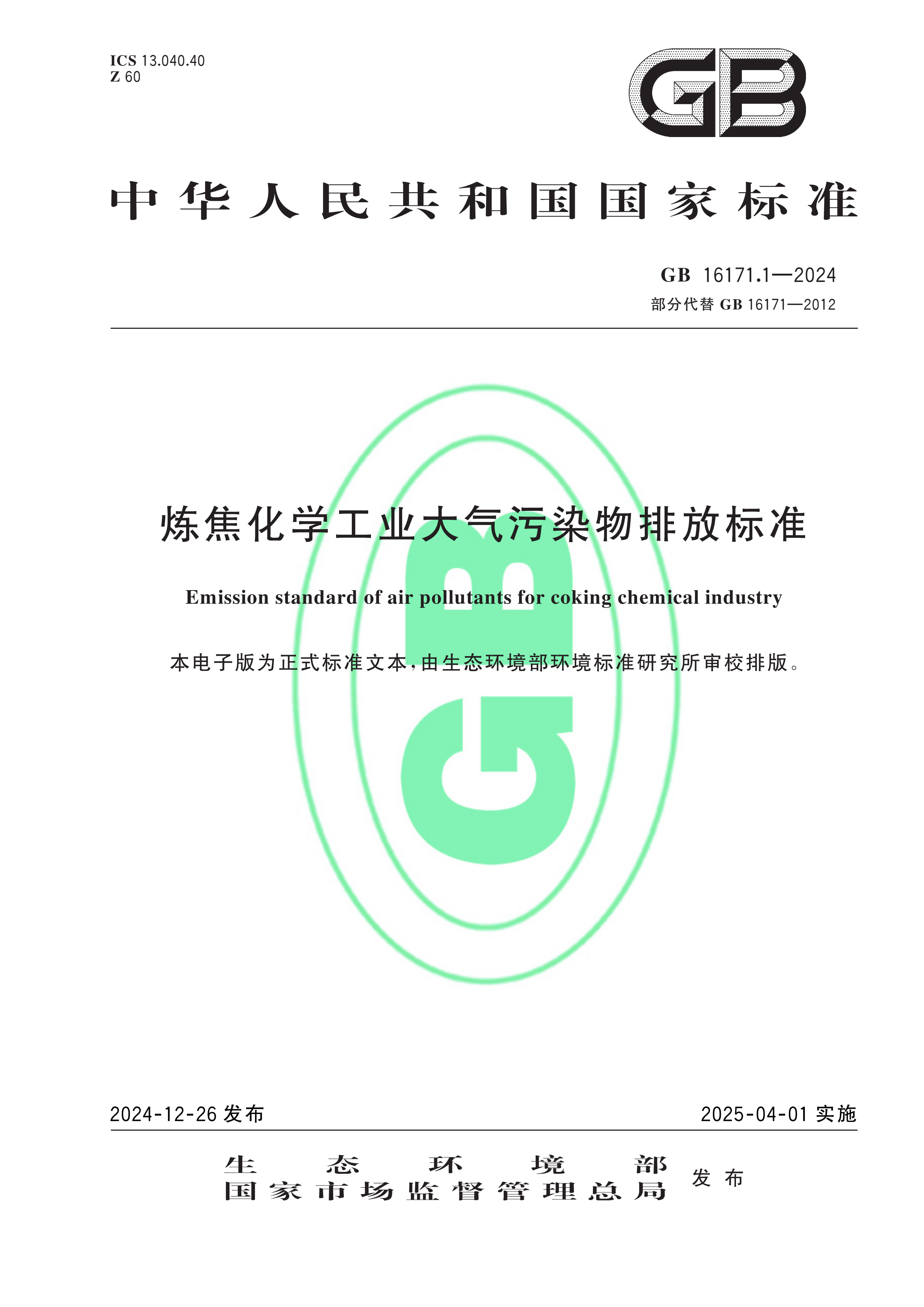 GB 16171.1-2024炼焦化学工业大气污染物排放标准