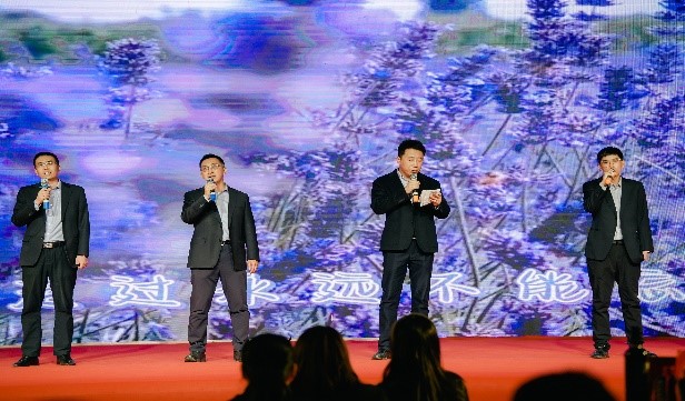 就在这温情流淌的时刻,副总经理董兴宏兴致高昂,率先献歌一曲,瞬间点燃了现场的热情。随后,他将麦克风传递给了董事长徐列。徐董接过麦克风,饱含深情地演绎了一首经典老歌——《把根留住》。“为了生活,人们四处奔波……”徐董浑厚而感性的歌声,不仅是对经典的回味,更是对全体华泰人的殷切寄语:希望每一位员工都能如劲松般将根深深扎在华泰这片沃土之上,汲取营养,风雨同舟,共生共荣。徐董的倾情献唱深深打动了在场的每一个人,掌声与欢呼声经久不息。曲毕,徐董将麦克风传递给了智维总经理张允东,这不仅是歌声的传递,更象征着责任、信心与使命的接力。